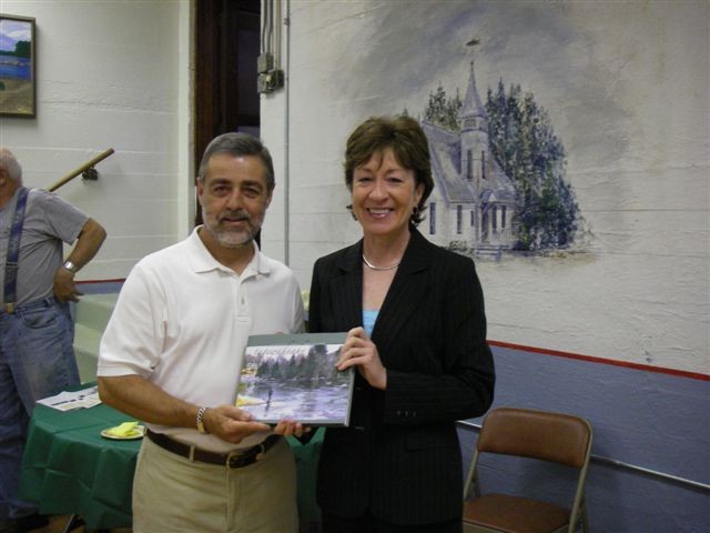 ![]() A large, handsome female landlocked salmon is handled by Maine IF& W biologists. Every aspect of the Landlocked Salmon's ecology and management are detailed in Chapter One. ![]() The author remembers...A 1974 visit is enshrined in his memory. Can the world ever look any better than this? Chapter Two, plus Stacy LaBare's beautiful hand-rendered map guides you up and down the river. ![]() "Helping out nature" as Maine IF&W Grand Lake Stream Hatchery Manager, Dave Marsanskis calls it. Ripe females are relieved of their eggs in early November. The GLS hatchery is a world-class facility. Read all about it in Chapter Three ![]() A female Ephemerella subvaria or Hendrickson, as anglers know it. One of the fly fisherman's favorites, salmon love them, too! Chapter Five has much more on GLS hatches for the fisherman and nature lover. ![]() Many celebrities have enjoyed fine fishing and the sporting life at Grand Lake Stream. Here, Baseball great Ted Williams and entertainer "Buffalo Bob" Smith, famous for his Howdy Doody puppet act, celebrate a catch. See Chapter Six for more fascinating history and personalities. ![]() The author presents an advance copy of Tagewahnahn to Maine U.S. Senator Susan Collins at an August 13 visit to Grand Lake Stream.